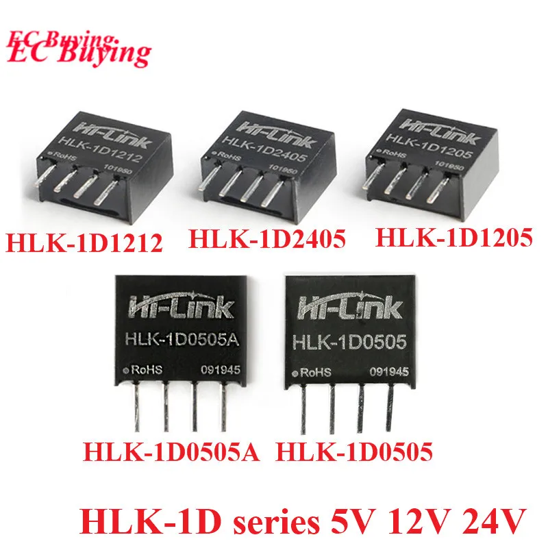 Módulo de fuente de alimentación CC CC no regulado aislado DC-DC 5V 12V 24V a 5V 1W DC a DC SIP HLK-1D1205 1D2405 1D1212 1D0505AHLK