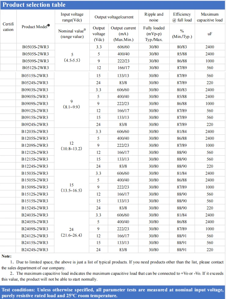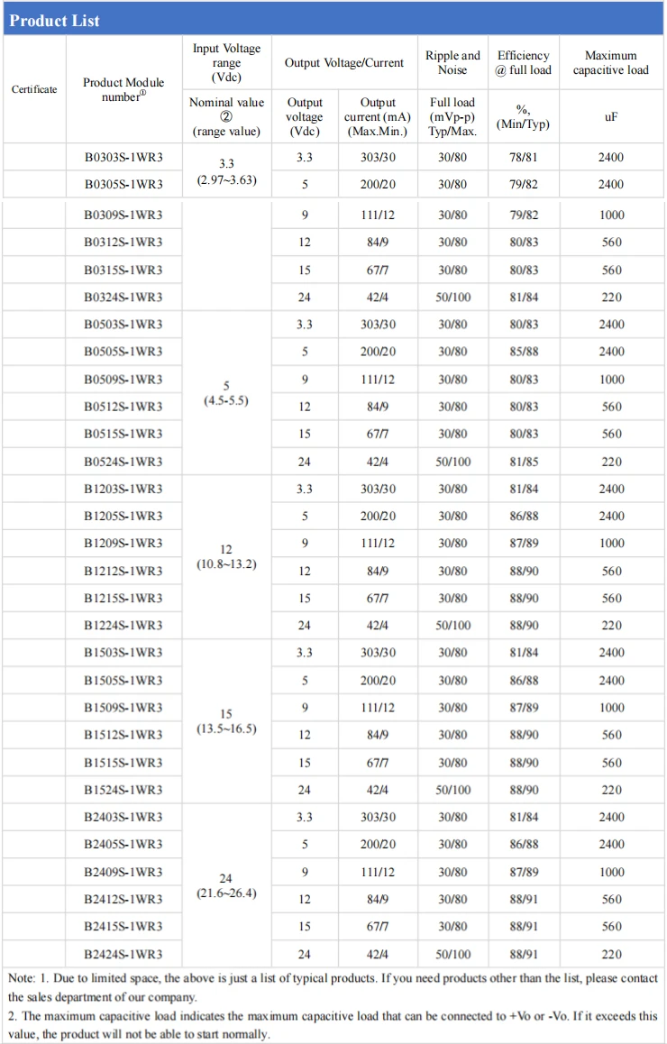 Los productos de la serie DC/DC de 1 W pueden proporcionar un volumen pequeño, micropotencia de alta eficiencia, aislamiento de entrada sin estabilización, módulo de fuente de alimentación de salida única: los productos de la serie están especialmente diseñados para la aplicación de asiones en las que un conjunto de voltaje solado de la fuente de alimentación de entrada es necesario generar en el sistema de bolsas a bordo.El producto es adecuado para: ocasiones de circuitos digitales puros, ocasiones generales de circuitos analógicos de baja frecuencia, ideas de control de relés, ocasiones de circuitos de intercambio de datos, etc.Rendimiento:Característica: Entrada de voltaje constante, voltaje único aislado no estabilizado.salida, IWeficiencia de transferencia 80% (típico)Se requiere aislamiento entre entrada y salida (voltaje de aislamiento=1500 VCC)protección contra cortocircuitos de salidaEl voltaje de la fuente de alimentación de entrada es relativamente estable.(Variación de voltajerango ±10Vin)rango de temperatura de funcionamiento:-40°C-+85°CNo se requiere la estabilidad de los voljes de salida.Paquete SIP pequeñoPin estándar internacional, instalación directa de placa PCBAdopta protección ambiental de alta calidad, resistente al agua y conductor de calor.Adhesivo para llenado y sellado, a prueba de humedad y vibraciones, que cumple con el estándar IP65 resistente al agua y al polvo.