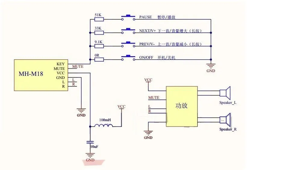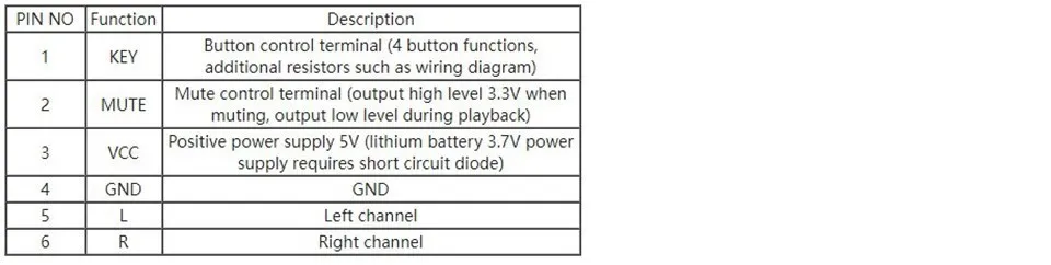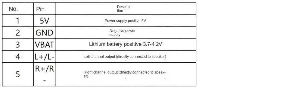 4.Este producto tiene un circuito amplificador de potencia dual de 5W, ¡no utilice otro amplificador de potencia!La salida de los dos amplificadores no se puede conectar en paralelo o el electrodo negativo está conectado entre sí, de lo contrario dañará el chip del amplificador.