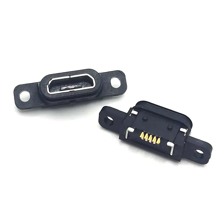 1-10 Uds Micro USB 5pin conector de carga Puerto de base 5P IP67 conector hembra impermeable con orificio para tornillo