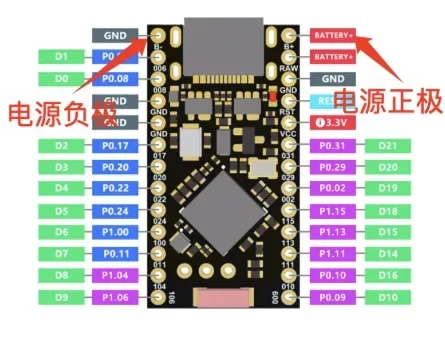 SuperMini NRF52840 admite carga y descarga de batería de litio de 3,7 V.La velocidad de carga es de 100 mA durante la carga, por lo que una batería de 2000 mAh tarda 20 horas en cargarse completamente.