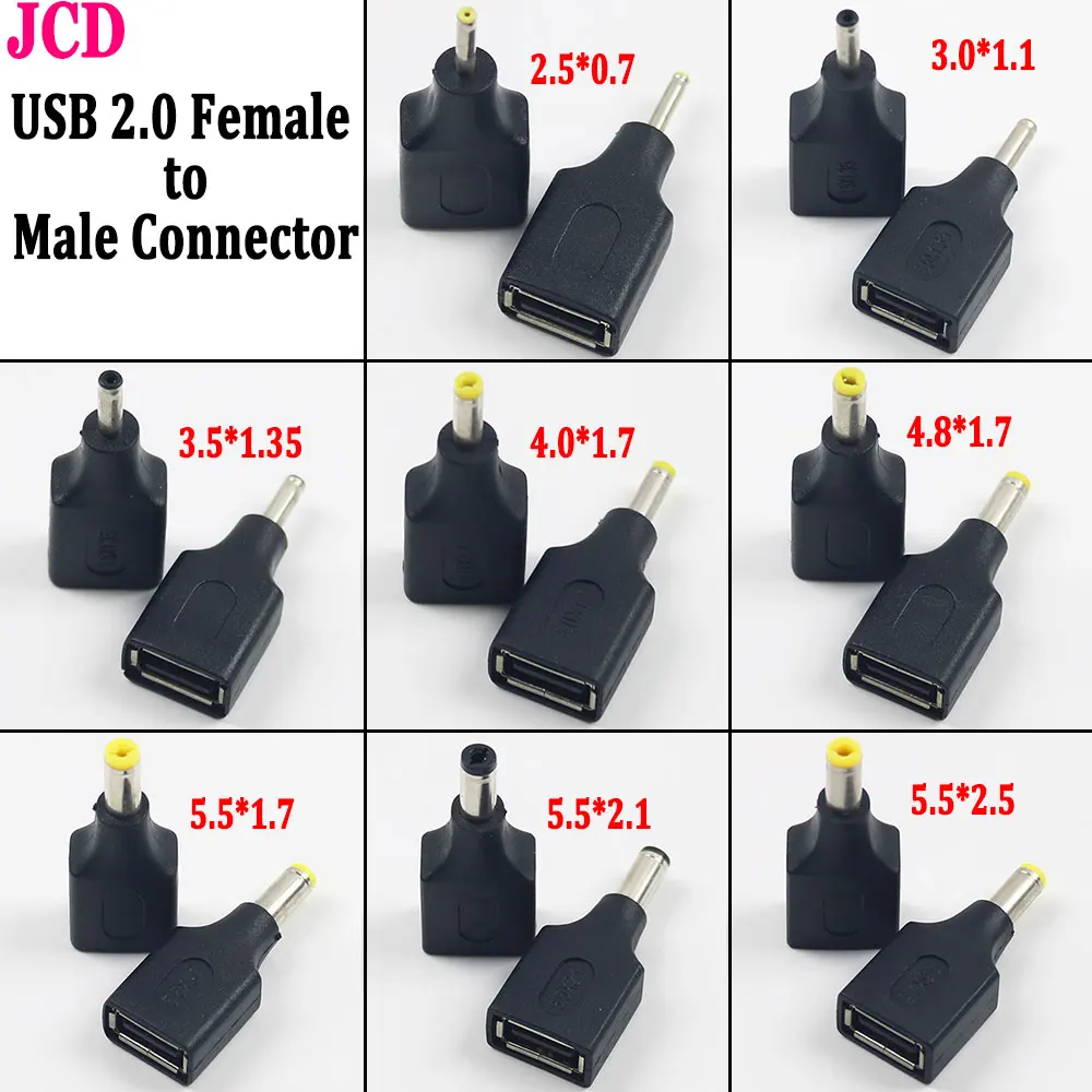 Comprar 1-10 Uds tableta portátil USB 2,0 hembra a DC 2,5x0,7 3,5x1,35 4,0x1,7 4,8x1,7 5,5x2,1/2,5mm adaptador de conector de alimentación macho