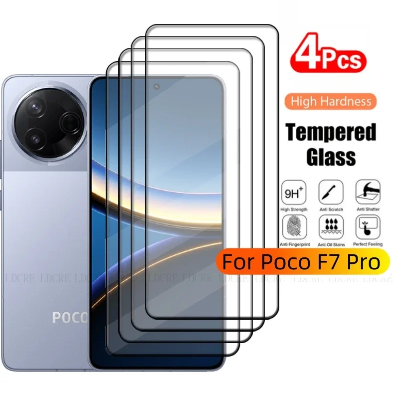 Comprar 1/2/3/4 Uds para Poco F7 Pro vidrio Poco F7 Pro Protector de vidrio templado cubierta completa pegamento 9H HD Protector de pantalla Xiaomi Poco F7 Pro