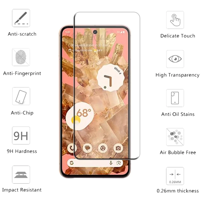 1.Borde de arco 2.5D: tacto suave, vidrio ultrafino de aproximadamente 0,3 mm.2.Dureza 9H: súper dura, incluso los objetos afilados como cuchillos y llaves no rayarán la película de vidrio templado, ultraduradera.3.Excelente ventana de visualización: transmitancia óptica HD 99%, sensibilidad táctil inigualable.4.Revestimiento oleofóbico: antihuellas, antiaceite, antiácido y antiálcali y otros contaminantes.5.Fácil instalación: la parte posterior está cubierta con un fuerte adhesivo de silicona para una fácil instalación y un ajuste perfecto.6.A prueba de explosiones e irrompible: incluso si se rompe, no salpicará, es mucho más seguro que otros productos de vidrio.Lista de productos:
