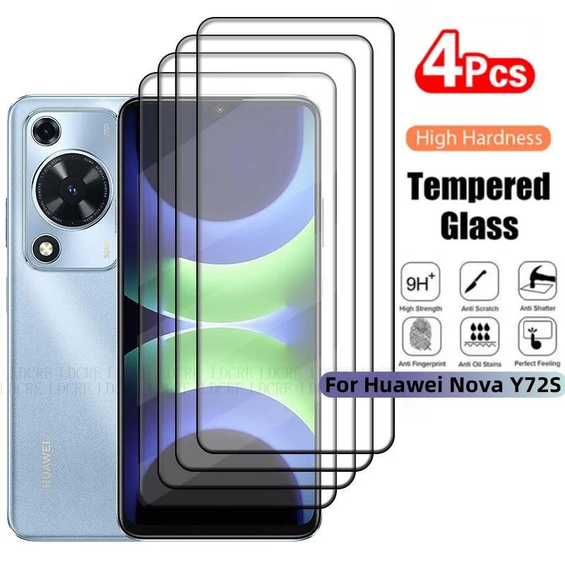 Comprar 1/2/3/4 Uds para Huawei Nova Y72S vidrio Huawei Nova Y72S vidrio templado 9H cubierta completa pegamento Protector de pantalla de teléfono Huawei Nova Y72S