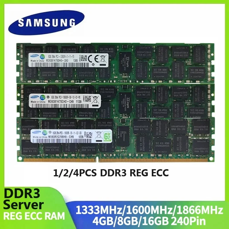 1/2/4PCS Server Memory RAM Samsung Server Memoria DDR3 REG ECC Registered Memory 16GB 8GB 4GB RAM 1866 1600 1333MHz PC3-12800R