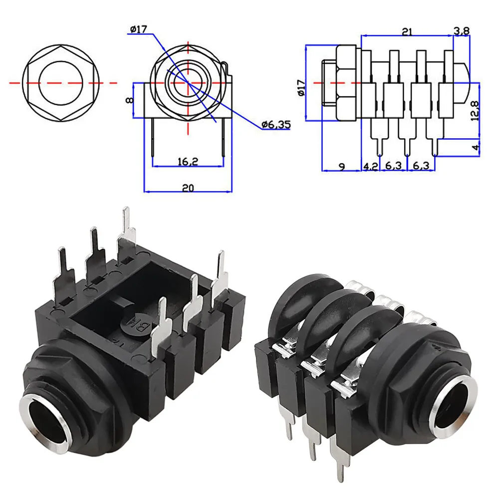 1/2/5/10 Uds 6.35mm Jack 1/4" 6pin estéreo hembra auriculares enchufe Audio micrófono Jack rosca PCB conectores de montaje en Panel