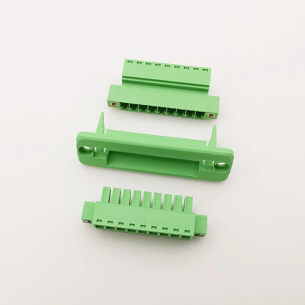 1/2 juegos de bloques de terminales de 3,81 mm a través de pared enchufable sin soldadura tipo 2P/3P/4P/5P/6P/8P/9P/10P/12P 3,81 mm con panel fijo de brida