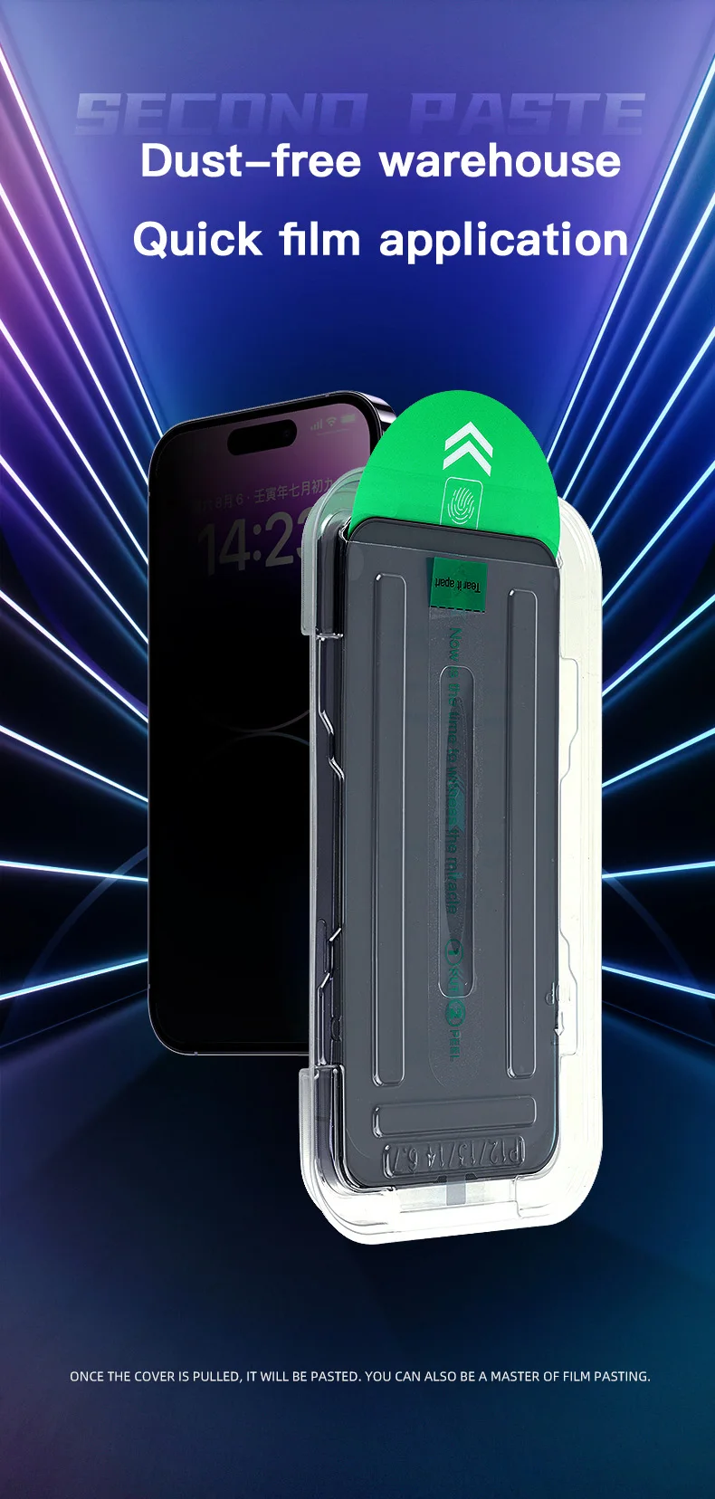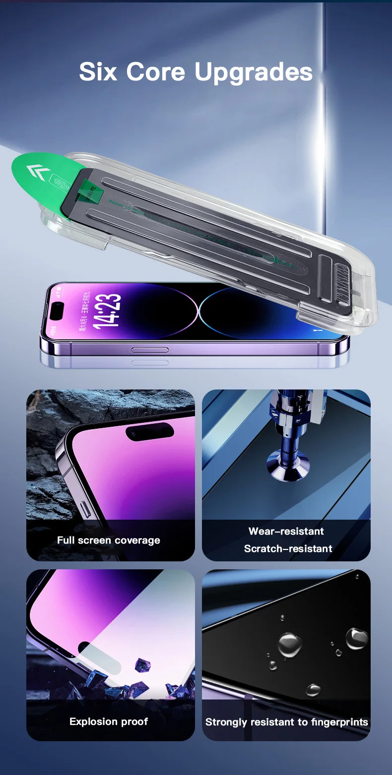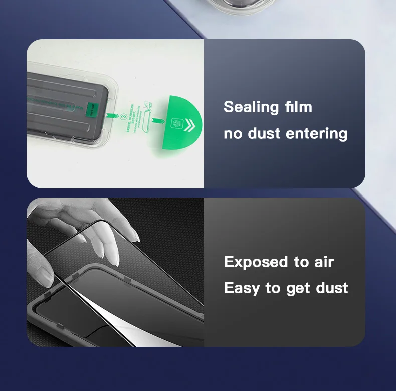 1-2 uds cajas libres de polvo fáciles de instalar para iPhone 16 15 14 Pro Max 15 16 Plus 12 13 Mini Protector de pantalla privacidad vidrio templado