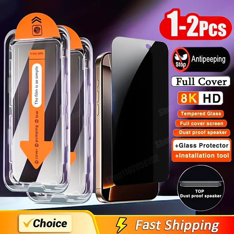Comprar 1-2 uds cajas fáciles de instalar sin polvo para iPhone 16 15 14 Pro Max 15 16 Plus 12 13 Mini Protector de pantalla vidrio templado de privacidad