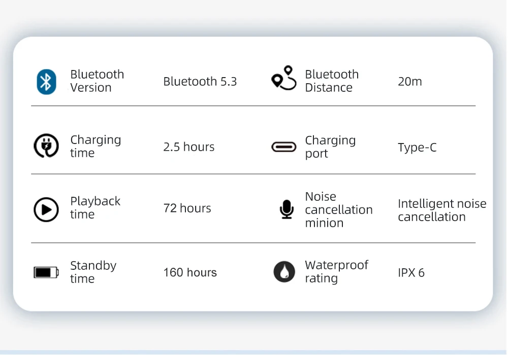 Utilizando una tecnología impermeable bien diseñada, el nivel de impermeabilidad de estos auriculares ha alcanzado IPX6 sin temor al viento y la lluvia.