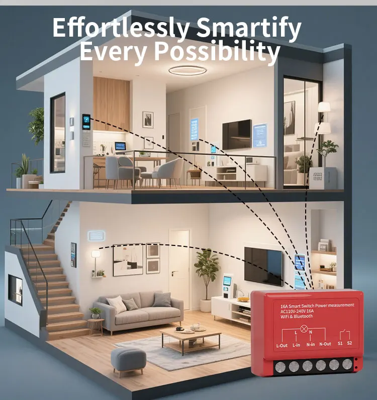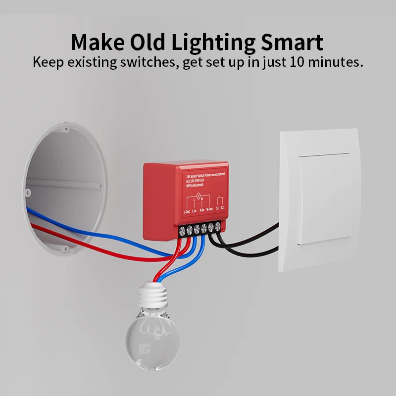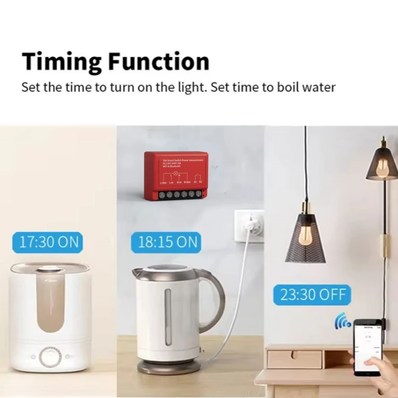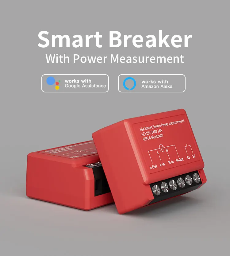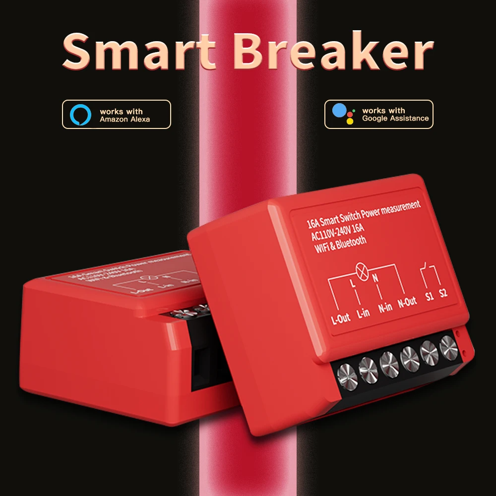 Comprar 1/ 2 uds Tuya interruptor inteligente 16A WIFI + BLE módulo de interruptor de medición de potencia DIY disyuntor de sincronización vida inteligente Google Alexa Control de voz