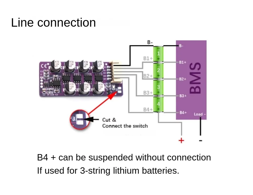 DescripciónEl producto se utiliza para la ecualización de voltaje entre paquetes de baterías de litio y funciona de forma independiente con la placa de protección sin afectarse entre sí.La corriente de equilibrio llega a 1200 mA y la precisión es superior a 0,03 V.Es adecuado para el mantenimiento del paquete de baterías y el uso del paquete de baterías de bricolaje.Parámetros de desempeñoBaterías adecuadas: fosfato de hierro y litio ternario universalCorriente equilibrada: Máximo 1,2 A (diferente de diferencia de voltaje, resistencia interna, resistencia de línea, etc.)Precisión de ecualización: 3mVA diferencia del equilibrio pasivo, el producto es más eficiente y genera menos calor mediante transferencia de energía.La temperatura general es de aproximadamente 30-45 grados Celsius, la corriente de equilibrio es de hasta 1200 mA, el consumo de energía es tan bajo como 1,5 mA y la celda de la batería duerme automáticamente cuando es inferior a 2,5 V.Se puede integrar en el paquete de baterías durante mucho tiempo.Tenga cuidado al realizar el cableado.Un orden incorrecto, una polaridad inversa o un cortocircuito provocarán quemaduras.