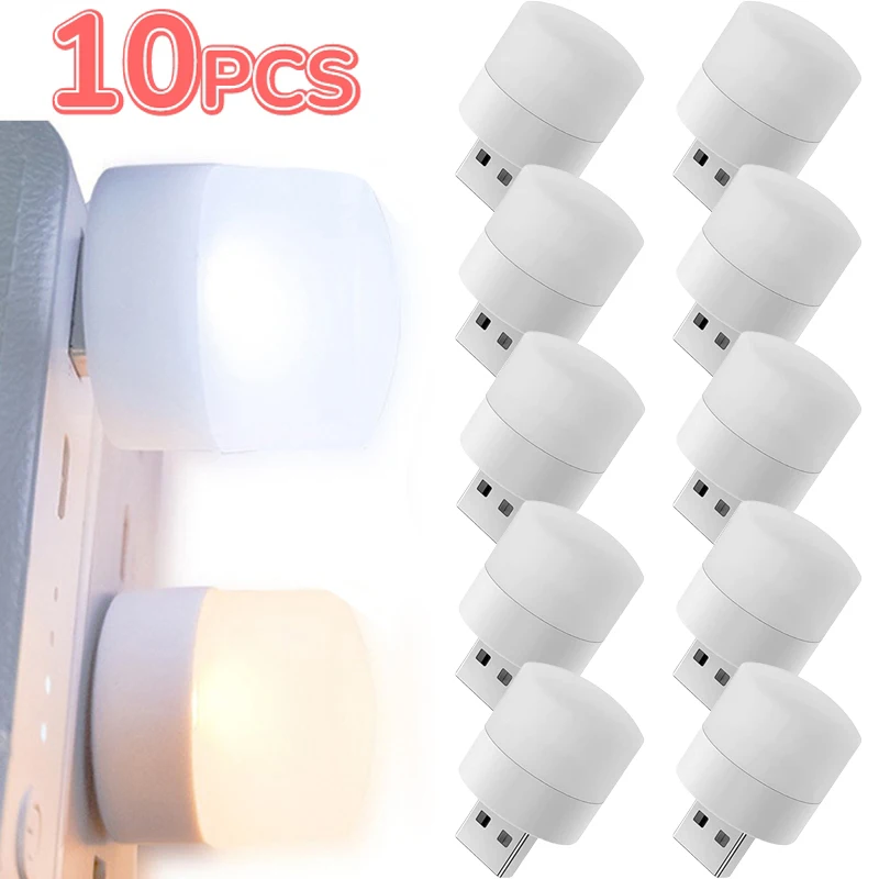 Comprar 1/3/5/10 Uds Mini lámpara con enchufe USB 5V 1W protección ocular brillante luz de lectura de libros ordenador móvil carga USB LED luz nocturna