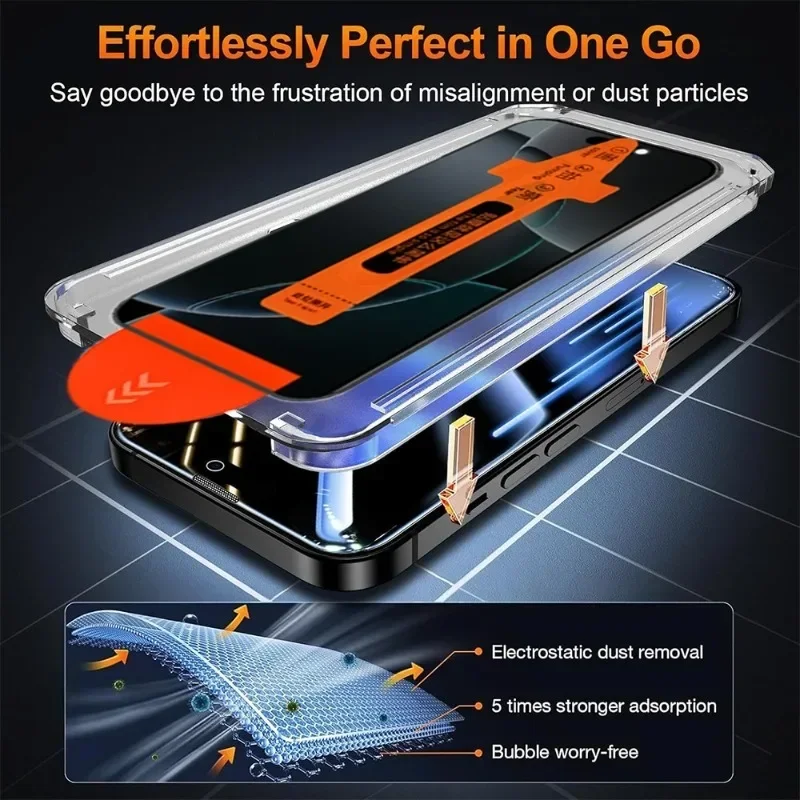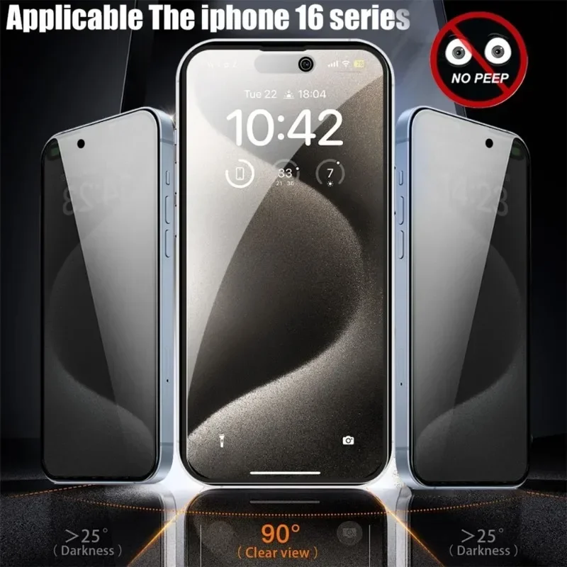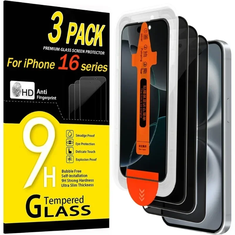 [Black anti-peep]: This tempered glass screen protector adopts black anti-peep design, which effectively blocks the side view, ensuring that only the user can see the screen content, enhancing privacy and security. [Auto-alignment]: This screen protector adopts the automatic alignment function, which is quick and easy to install. Just stick the protector on the screen, and it will automatically align for a perfect fit, ensuring a bubble-free and secure fit. [Dust-free installation]: This screen protector provides a dust-free installation process. The one-click cover design ensures a seamless fit without complicated alignment, making it easy for even first-time users to install. [High-quality material]: This screen protector is made of durable tempered glass, which provides strong protection against scratches and impacts. This material ensures long-lasting durability and maintains its clarity and privacy properties for a long time. [Quantity and packaging]: Each package contains 1/2/3 tempered glass screen protector for iPhone 16 series. This high-quality protective film provides reliable protection and privacy for your device.