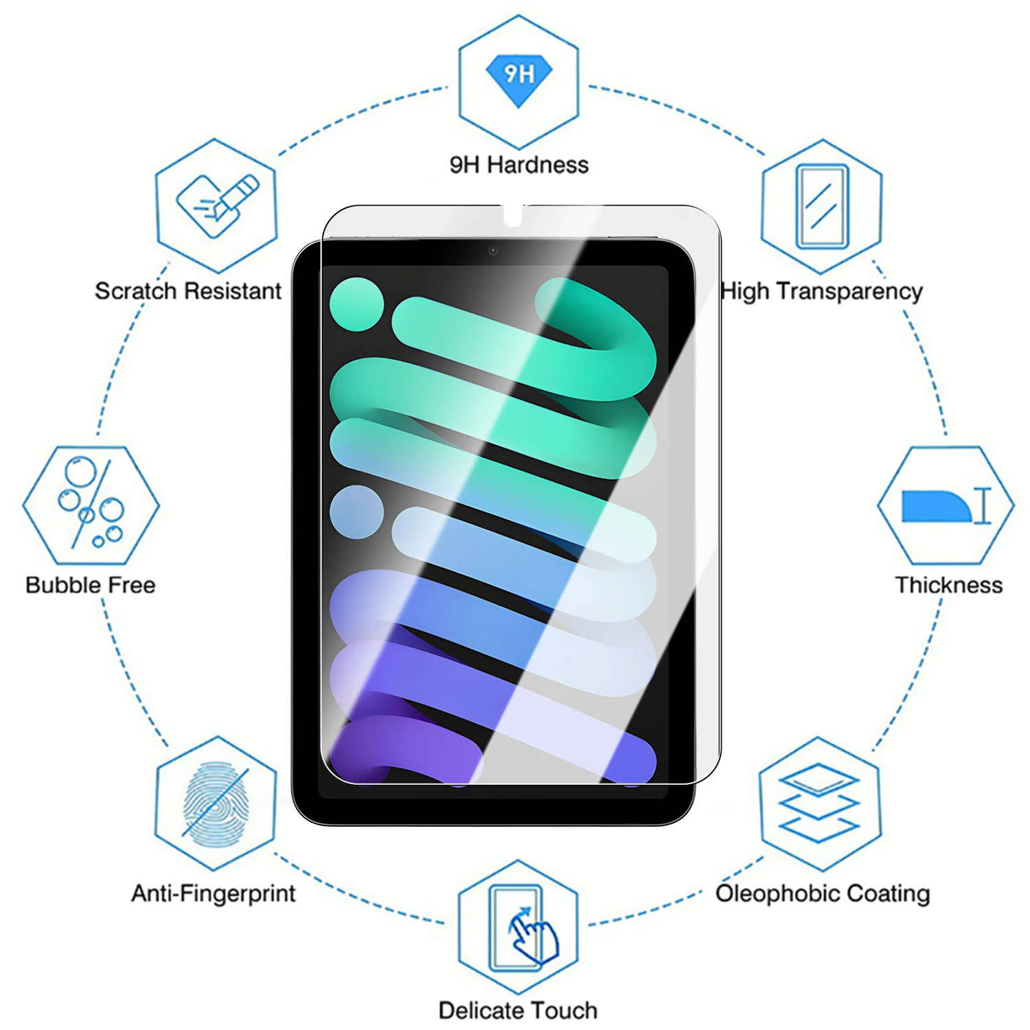 [Vidrio templado de alta calidad]: nuestro protector de pantalla de vidrio templado está hecho de vidrio templado duradero.Este material garantiza que el protector sea fuerte, resistente a los arañazos y fácil de limpiar, brindando una protección superior para la pantalla de su iPad mini 7 y iPad mini 6.