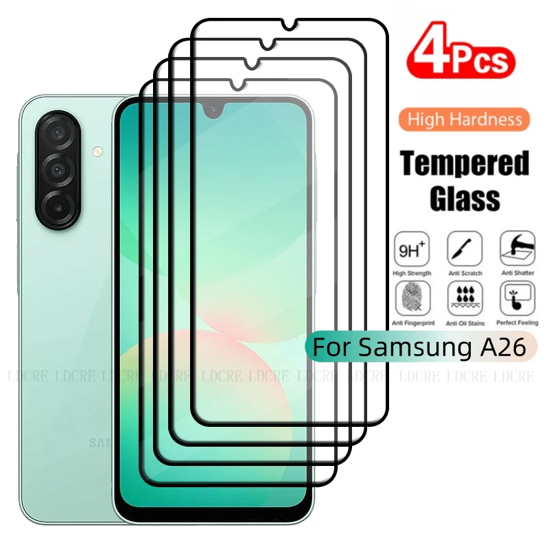 Comprar 1-4 Uds para Samsung A26 vidrio Samsung Galaxy A26 vidrio templado 9H HD cubierta protectora completa pegamento para Protector de pantalla Samsung A26
