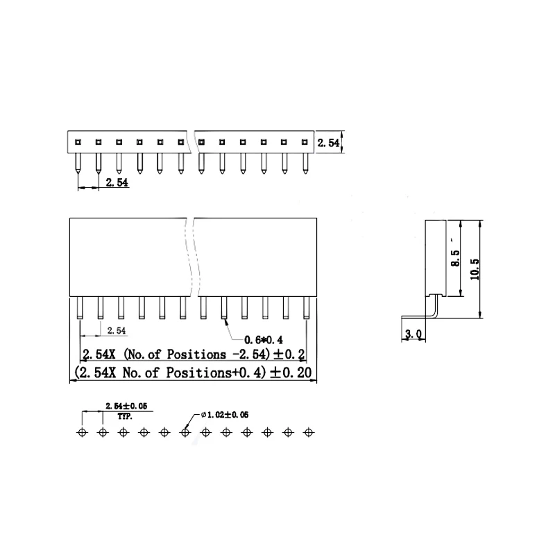1/5/10 Uds barra colectora de curva única conector de barra colectora de pin doblado de 2,54mm 90 grados horizontal 1*2/3/4/5/6/8-40P