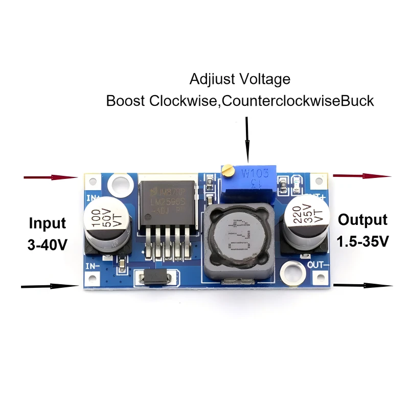 - Voltaje de salida: CC 1,5 V - 35 V (ajustable)
