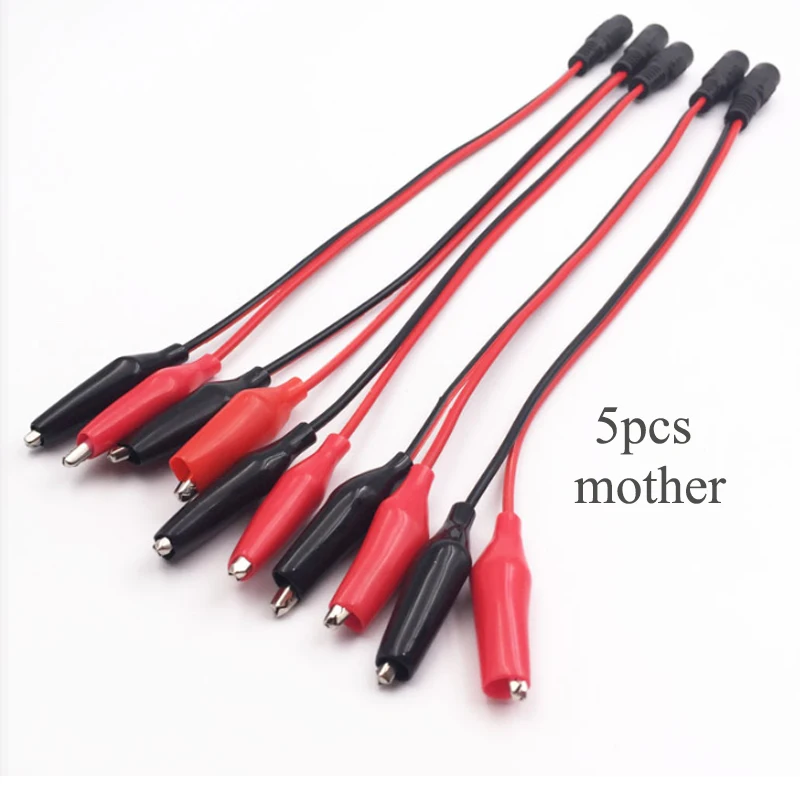 1-5 piezas 2 pinzas de cocodrilo a 1 adaptador de conector de clavija de alimentación CC macho o hembra cable de 25CM CC 5,5*2,1mm Clips cables de prueba de cocodrilo