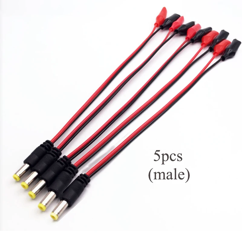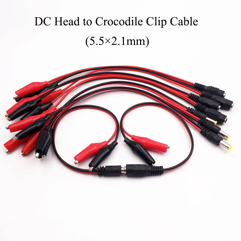 1-5 piezas 2 pinzas de cocodrilo a 1 adaptador de conector de enchufe de alimentación CC macho o hembra Cable de 25 CM CC 5,5 * 2.1 mm Cables de prueba de cocodrilo