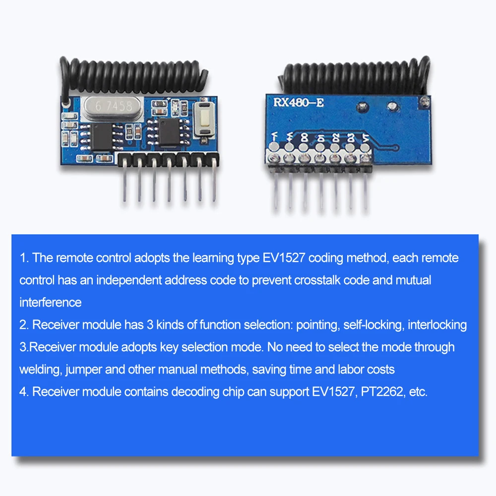 2.El módulo receptor incluye un chip decodificador, que puede admitir EV1527, PT2262, etc.