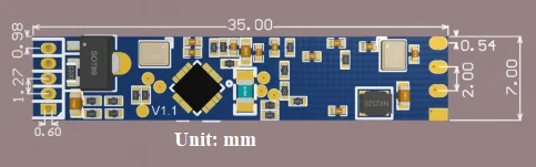 Module size: 7mmx35mm, 5 pin holes are reserved in the hardware (the factory default does not match the pins)