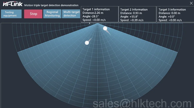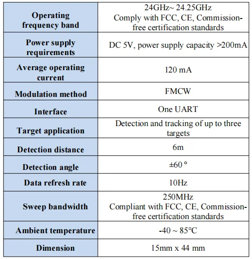 This product is mainly used in indoor scenes to sense whether there is a moving or micro-moving human body in the area, and output the detection results in real time. Farthest sensing distance up to 6 meters, distance resolution 0.75m. Provides a visual configuration tool, which can easily configure the sensing distance range and sensing in different intervals sensitivity and unmanned delay time, etc., to adapt to different specific application needs.