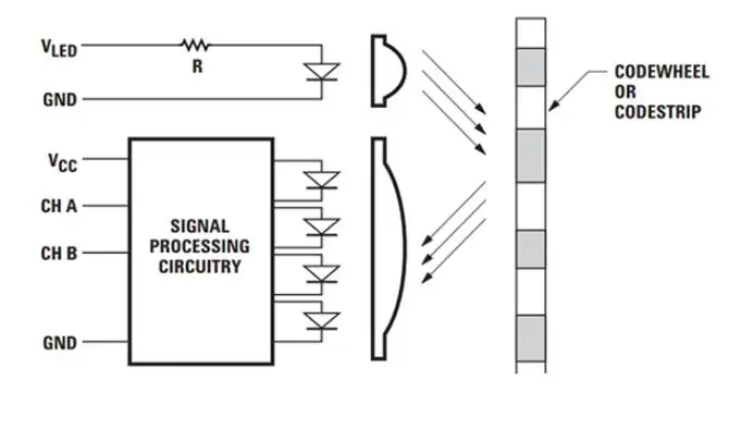 Incluye LED internos, fotodetectores, elementos ópticos,
