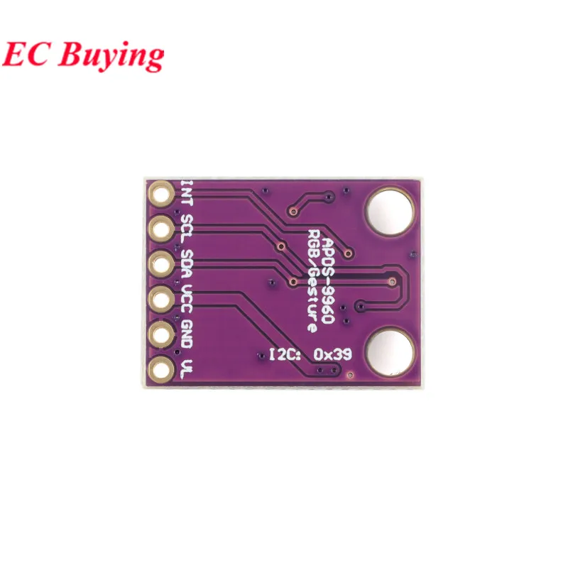 El APDS-9960 es un pequeño hardware serio con filtros de bloqueo UV e IR integrados, cuatro diodos separados sensibles a diferentes direcciones y una interfaz compatible con I2C.Para su comodidad hemos dividido los siguientes pines: VL (alimentación opcional al LED IR), GND (tierra), VCC (alimentación al sensor APDS-9960), SDA (datos I2C), SCL (reloj I2C) e INT ( interrumpir).Cada APDS-9960 también tiene un rango de detección de 4 a 8 pulgadas (10 a 20 cm).
