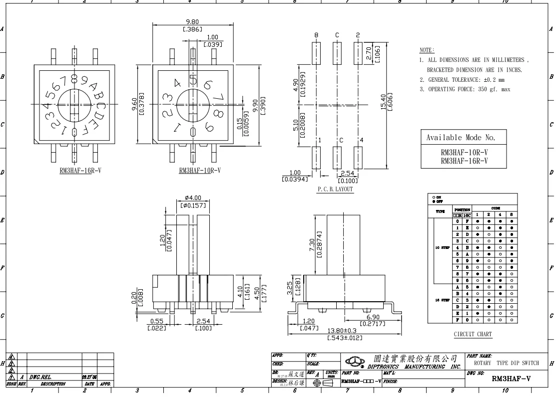 1-5 uds RM3HA-10R interruptor codificador rotatorio interruptor de Dial 10 0-9 parche de interruptor de codificación 3:3 con mango interruptor de codificación rotativo