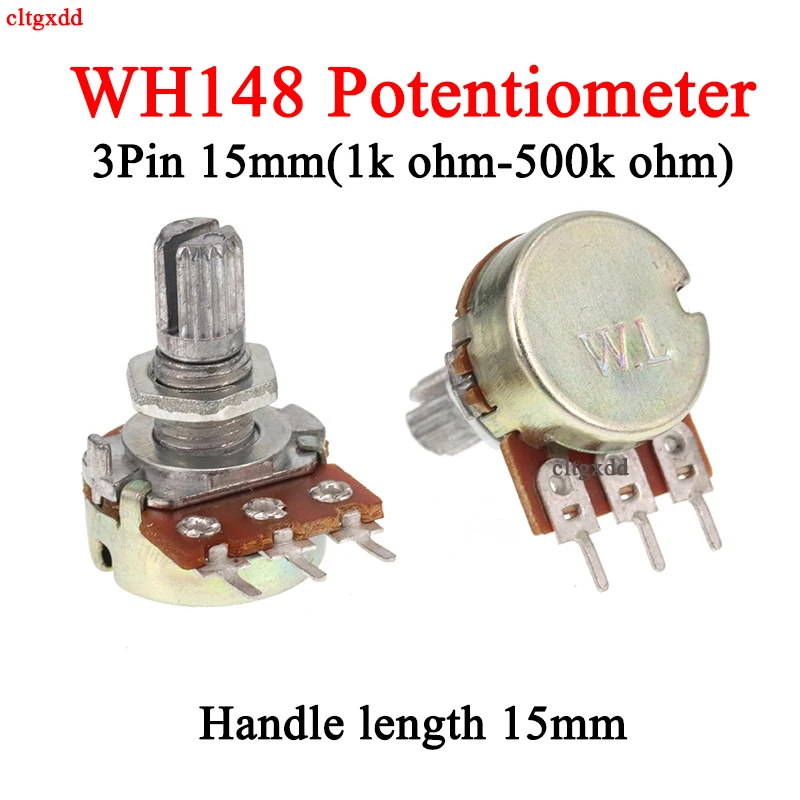 1 AMPLIFICADOR ESTÉREO DE DOBLE EJE, potenciómetro dual de 3 pines y 15mm, wh148 b2k b5k b10k b20k b50k b100k b500k 1K 2K 5K 10K 50k 100k 500K