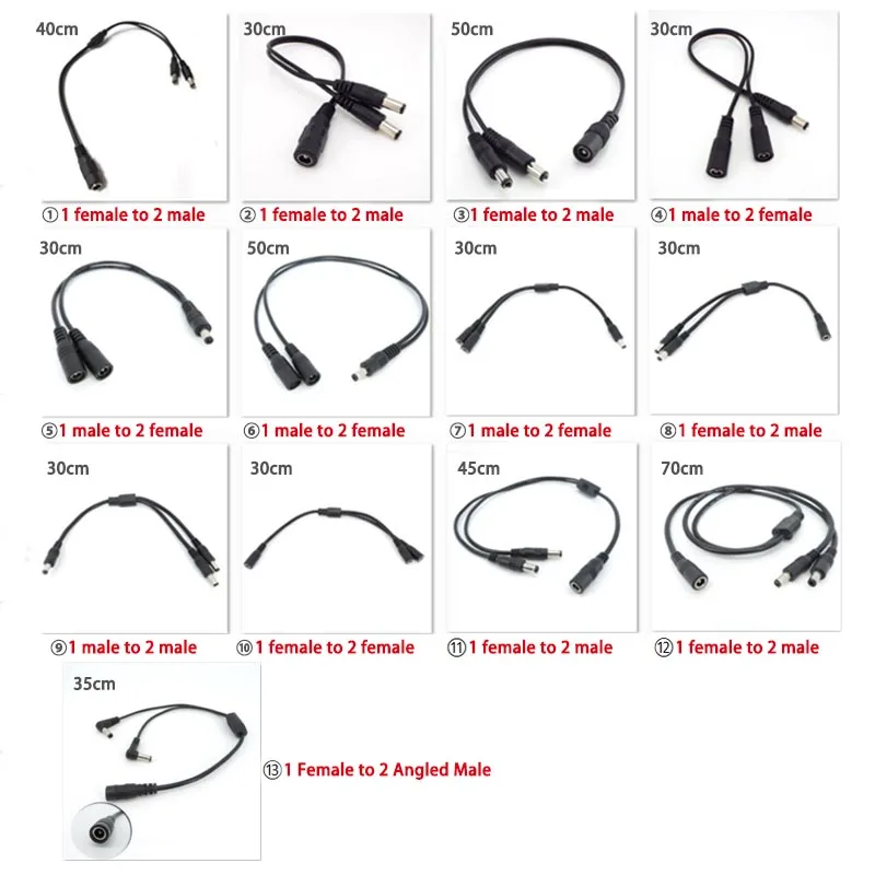1 CC macho hembra a 2 vías doble macho hembra Cable enchufe 5,5*2,1 mm 5,5x2,5 mm 2A 5A 7A adaptador divisor de fuente de alimentación para tira de LED