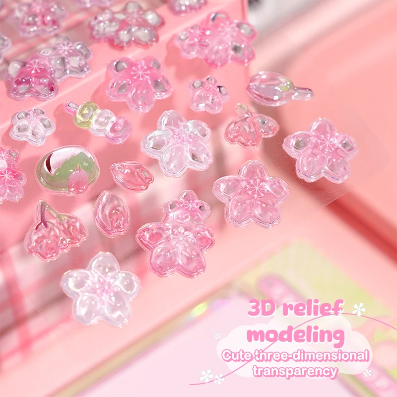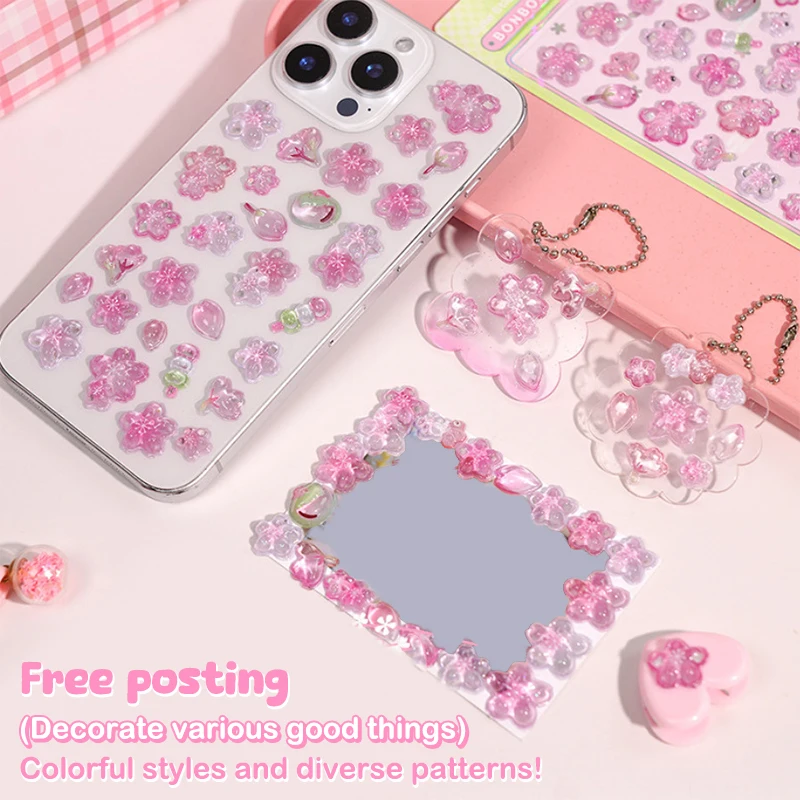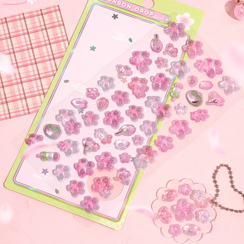 1 hoja de flor de cerezo rosa, pegatina en relieve 3D, decoración para álbum de recortes, diario DIY, papelería, calcomanías Kawaii