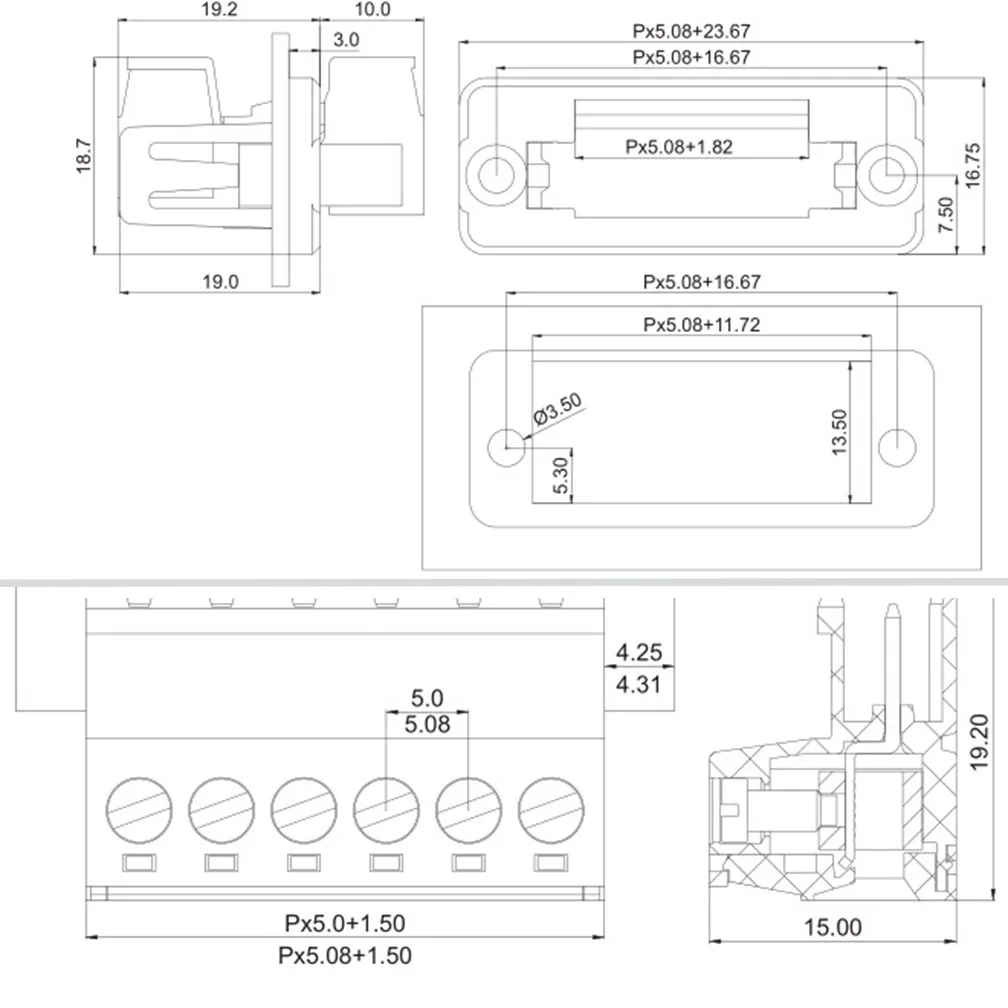 Comprar 1 Juego 2EDGWC paso 5,08mm 2P/3P/4P/5P/6P/8P/9P/10P conector de bloque de terminales enchufable JM2EDGKM paso de 5,08mm
