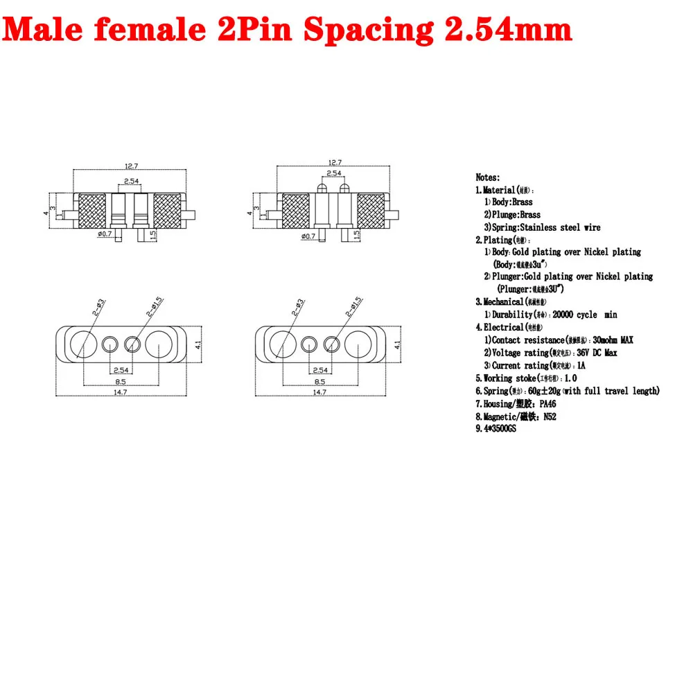 Variante: Color:2Pin 2.54mm Package Quantity:1sets Connector Type:Male Female
