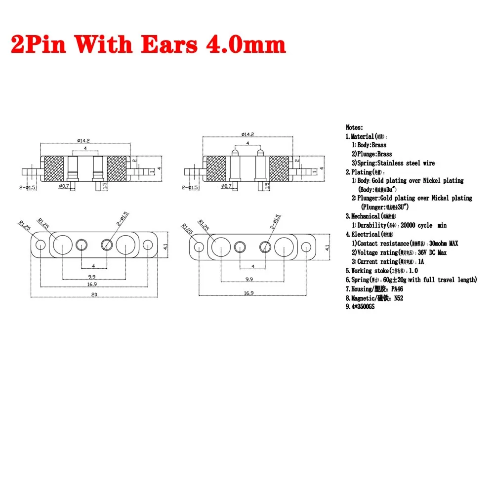 Variante: Color:2P With Ears4.0mm Package Quantity:1sets Connector Type:Male Female