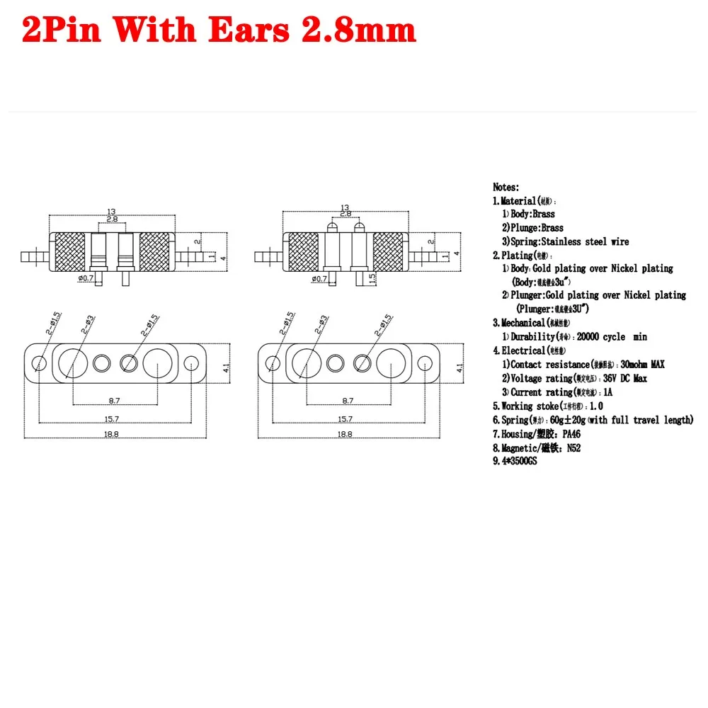Variante: Color:2P With Ears2.8mm Package Quantity:1sets Connector Type:Male Female