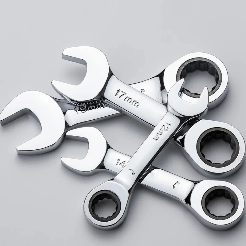 - Versátil y duradera: la llave de trinquete rápida con mango corto de 6-19 mm es una herramienta versátil diseñada para una amplia gama de aplicaciones.Fabricada con acero al cromo-vanadio de alta calidad, esta llave está diseñada para soportar los rigores del uso intensivo.Su diseño de doble extremo permite apretar o aflojar de forma rápida y eficiente pernos y tuercas, lo que lo convierte en un complemento indispensable para cualquier caja de herramientas.El mango corto y el diseño de flor de ciruelo de doble uso garantizan que pueda caber en espacios reducidos, lo que lo hace perfecto para tareas de reparación automotriz, industrial y doméstica.