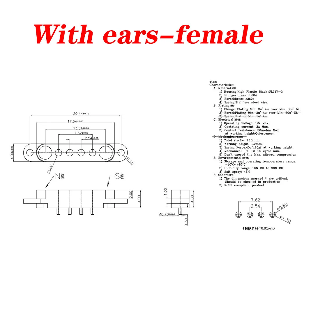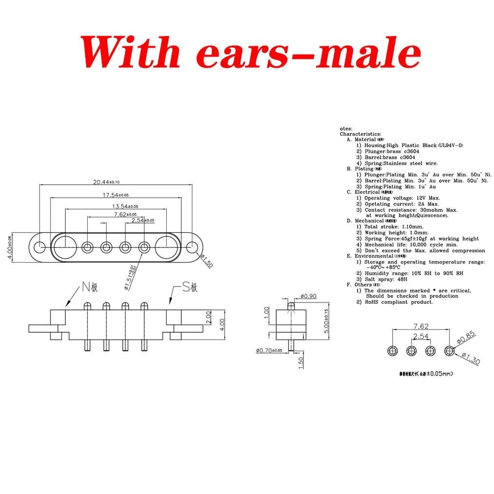 1 Juego de conector Pin Pogo magnético de 1A CC, 4 pines, Pogopin, macho y hembra, toma de corriente CC con resorte, 4P