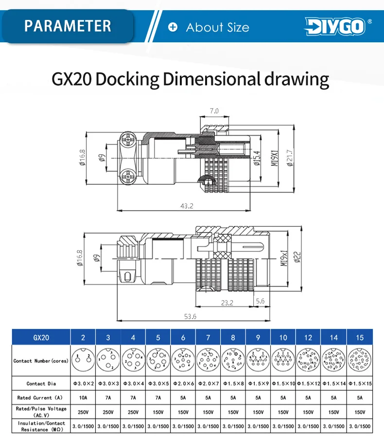 1 Juego de conectores de Cable de aviación de soldadura tipo tope GX20, enchufe macho hembra, conector de acoplamiento de Cable rápido de 2-15 pines DIY GO