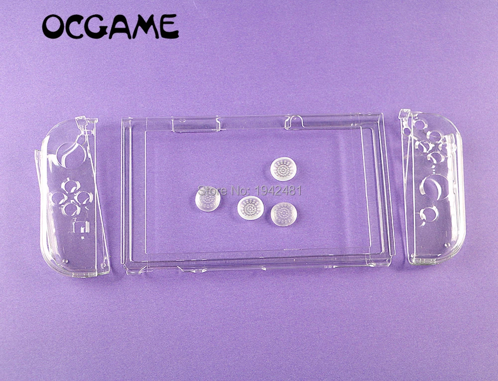 Funda protectora transparente de cristal duro para consola NS NX Switch, funda + tapas para pulgar