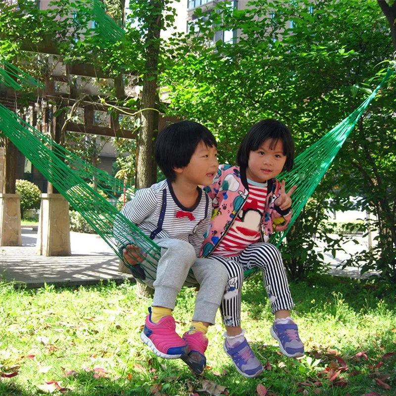 Comprar 1 Juego de hamaca de malla gruesa para acampar, cuerda de nailon, hamaca individual, cuerda de nailon, suministros para exteriores, Verde