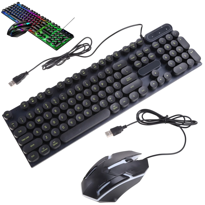Juego de teclado y ratón D7YC, teclado Retro Punk, juego retroiluminado, juego de suspensión con cable USB, juego de teclado y ratón