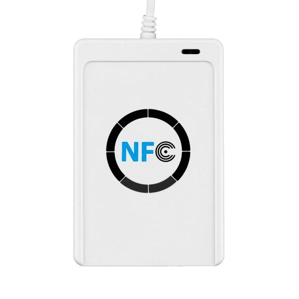 Características:1. Antena integrada para acceso a etiquetas sin contacto, con distancia de lectura de tarjetas de hasta 50mm (dependiendo del tipo de etiqueta)2. Compatible con ISO 14443 tipo A y B, para mifare, para feliCa y los 4 tipos de etiquetas NFC (ISO/IEC 18092)3. Compatible con Mifare ultraligero C (a través de pseudo APDUs) y para Mifare plus SL1 (4 bytes UID, a través de pseudo APDUS) y SL34. Admite los 3 modos de NFC: lector, emulación de tarjetas y modos peer-to-peer5. Función anticolisión integrada (se detecta al menos 1 Tarjeta cuando se presentan varias tarjetas)Descripción:Puedes copiar toda la tarjeta de identificación, como tarjetas de acceso, tarjetas celulares, tarjetas de estacionamiento. Tarjeta de ascensor, tarjeta de tiempo.Especificaciones:Interfaz: USB de velocidad completaDistancia de funcionamiento:=50mm (depende del tipo de etiqueta)Tensión de alimentación: 5V CC reguladaCorriente de suministro: 200MA (en funcionamiento); 50ma (en espera); 100mA (normal)Temperatura de funcionamiento: 0-50 °CFrecuencia de funcionamiento: 13,56 MHzCompatibilidad de la interfaz de tarjeta inteligente: ISO14443 tipo A y B, para Mifare, para FeliCa y 4 tipos de etiquetas NFC (ISO/IEC18092).Dimensiones: 98mm (largo) x 65mm (ancho) x 12,8mm (alto)El paquete incluye:1 x lector inteligente NFC5 tarjetas IC1 CDNotas:1. Debido a la diferencia entre diferentes monitores, la imagen puede no reflejar el color real del artículo. Garantizamos que el estilo es el mismo que se muestra en las imágenes.2. Permite una ligera diferencia de dimensión debido a las diferentes medidas manuales.