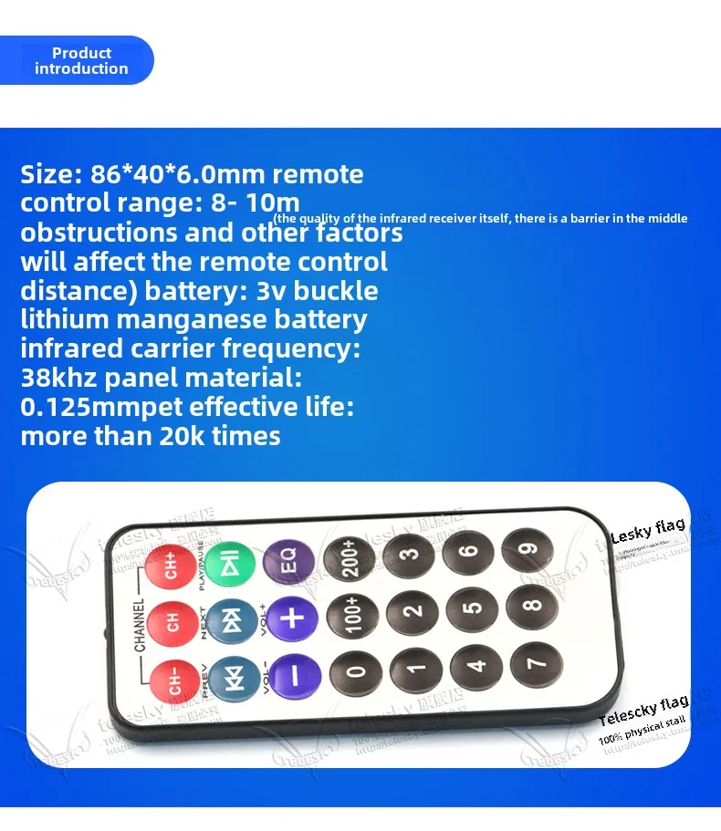 El producto es de muy buena calidad, recomiendo al vendedor. Después de recibirlo, verifiqué que el control remoto y el receptor funcionan. Estoy satisfecho con el cumplimiento del pedido. Lo compré para música ligera en Arduino.