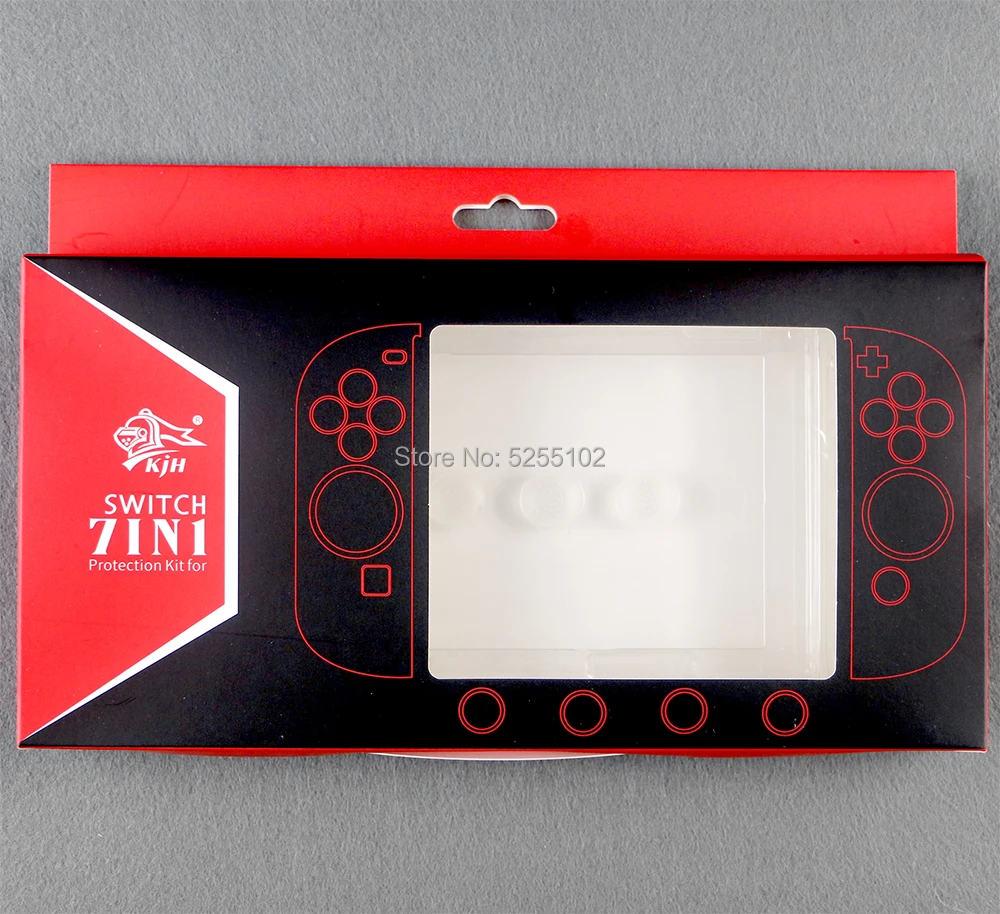 Comprar 1 Juego para Nintendo NS Switch 7 en 1 funda protectora de consola Nintendo Switch carcasa protectora de cristal transparente con 4 tapas para pulgar