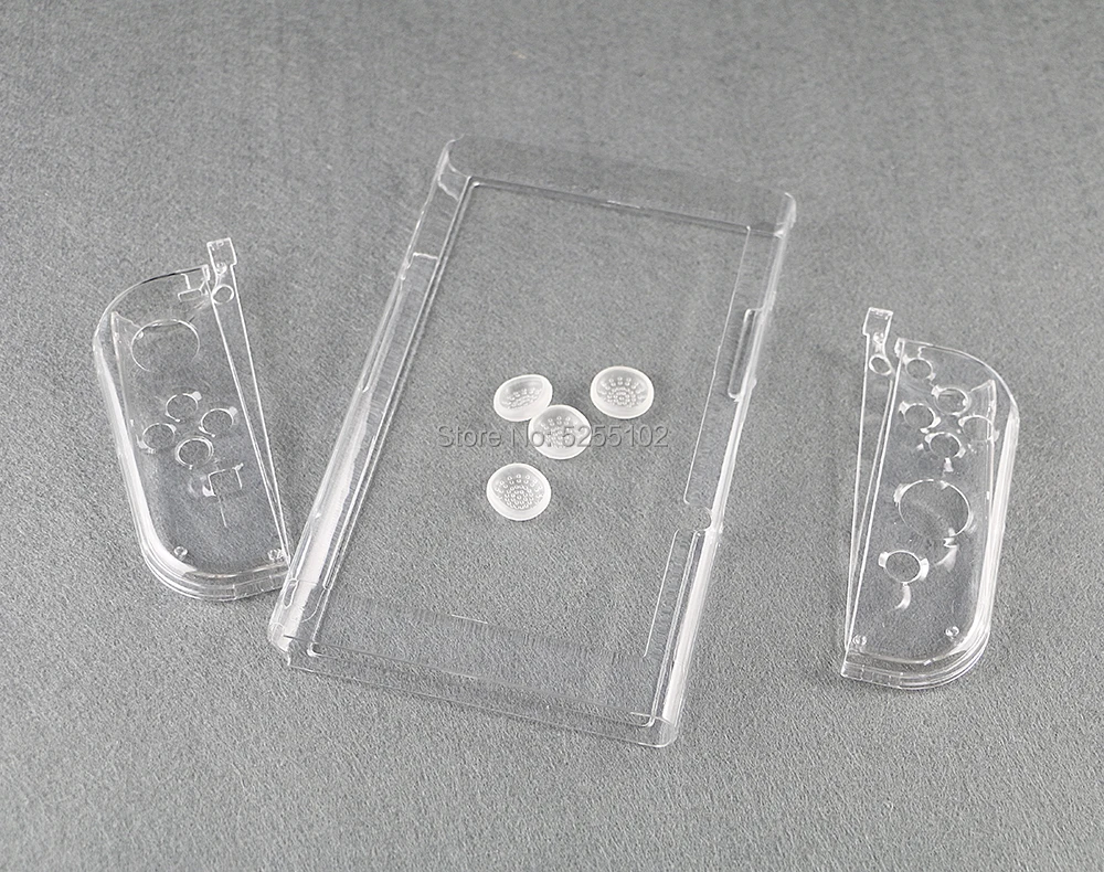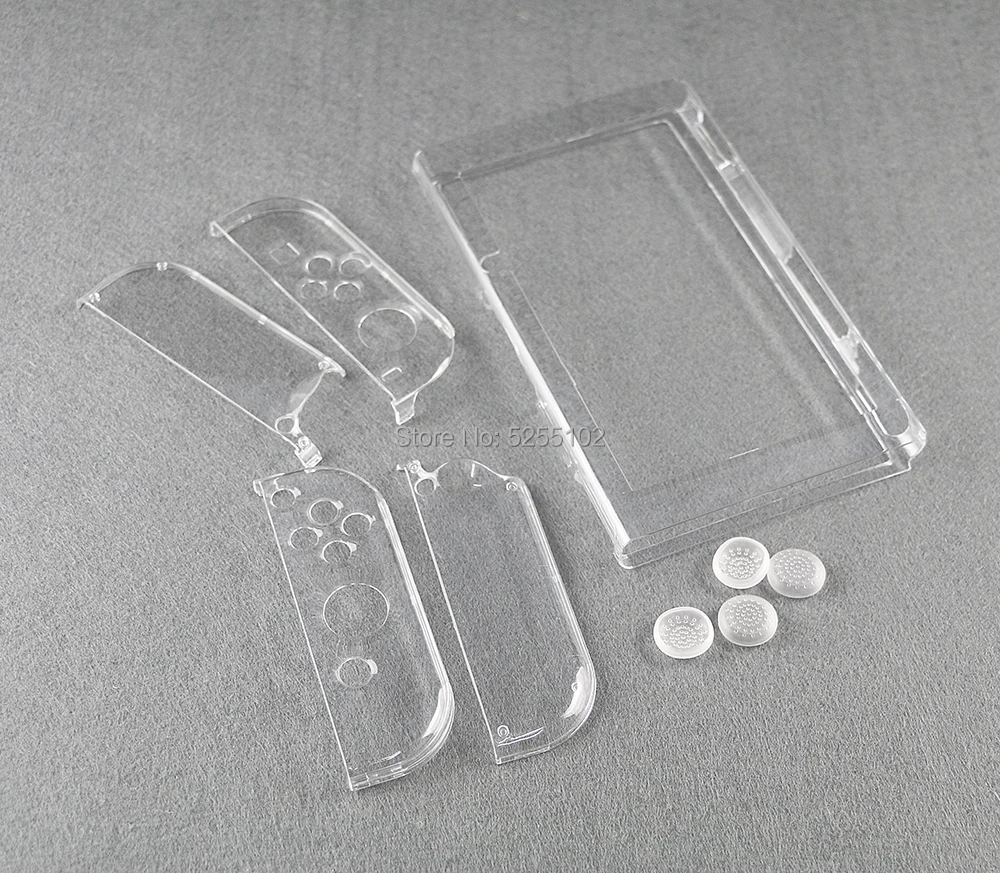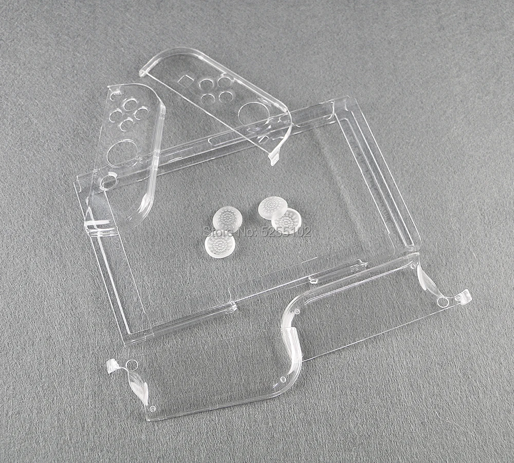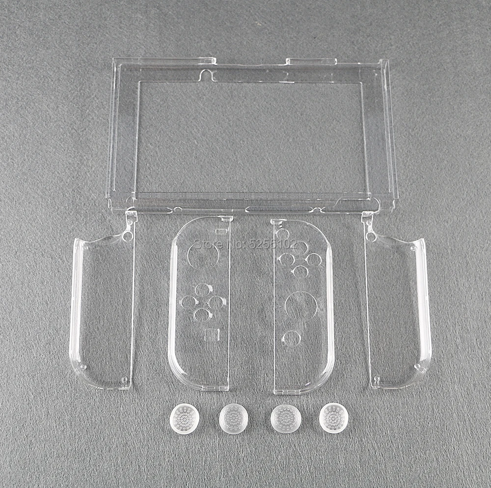 Para Nintendo NS Switch 7 en 1 funda protectora para consola Nintendo Switch carcasa protectora de cristal transparente con 4 tapas para pulgar