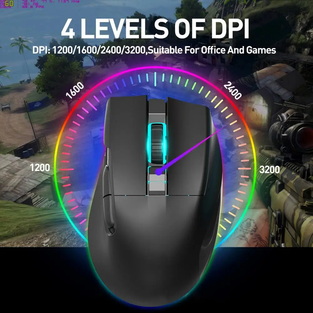Comprar 1 Juego de ratón mecánico de diseño ergonómico, ratón inalámbrico de 11 efectos de iluminación, reemplazo de ratón inalámbrico de 3200DPI