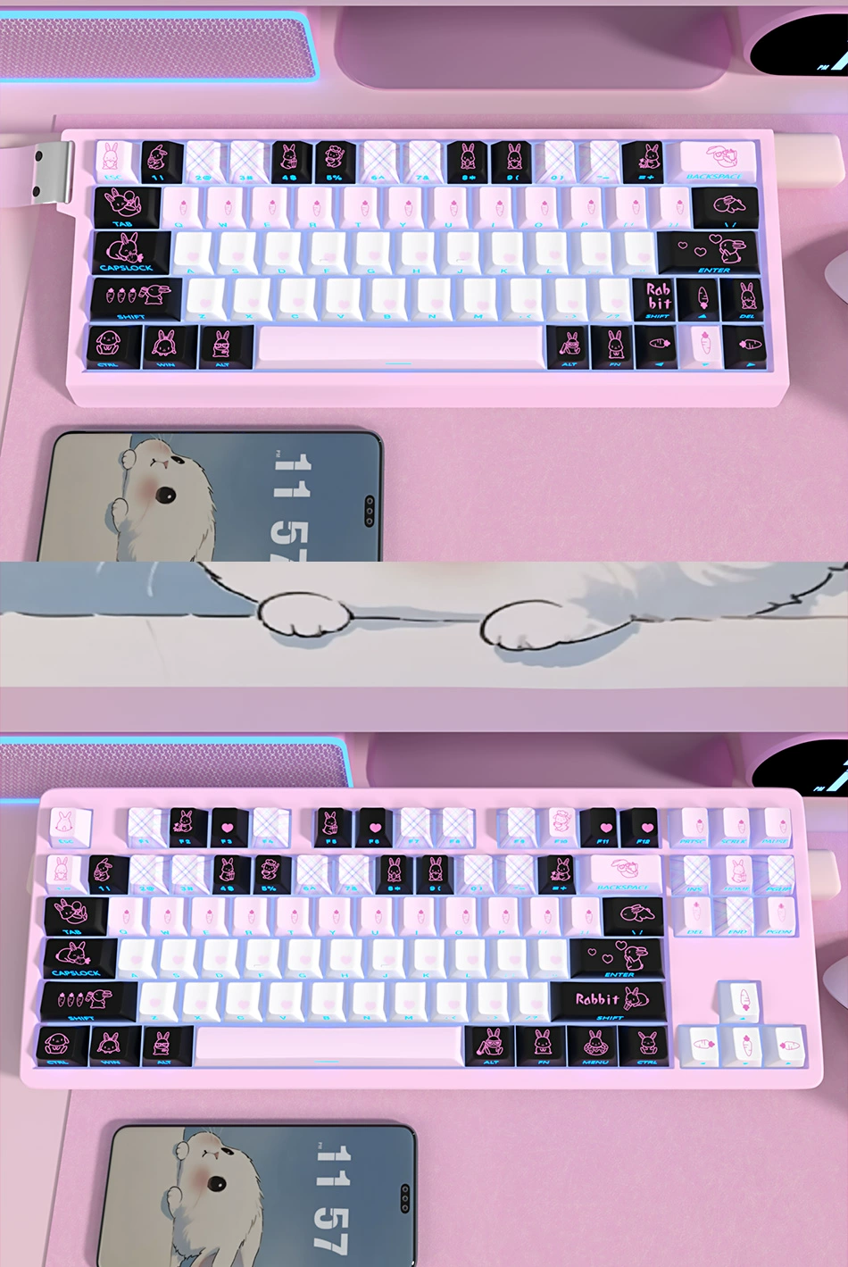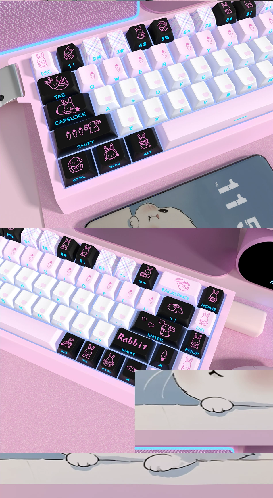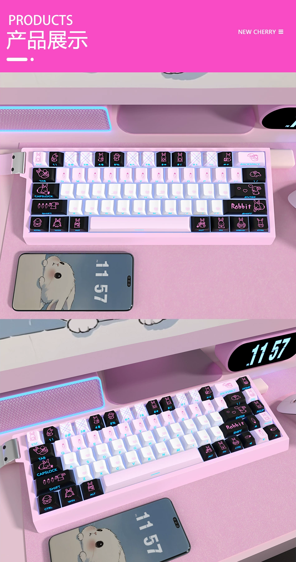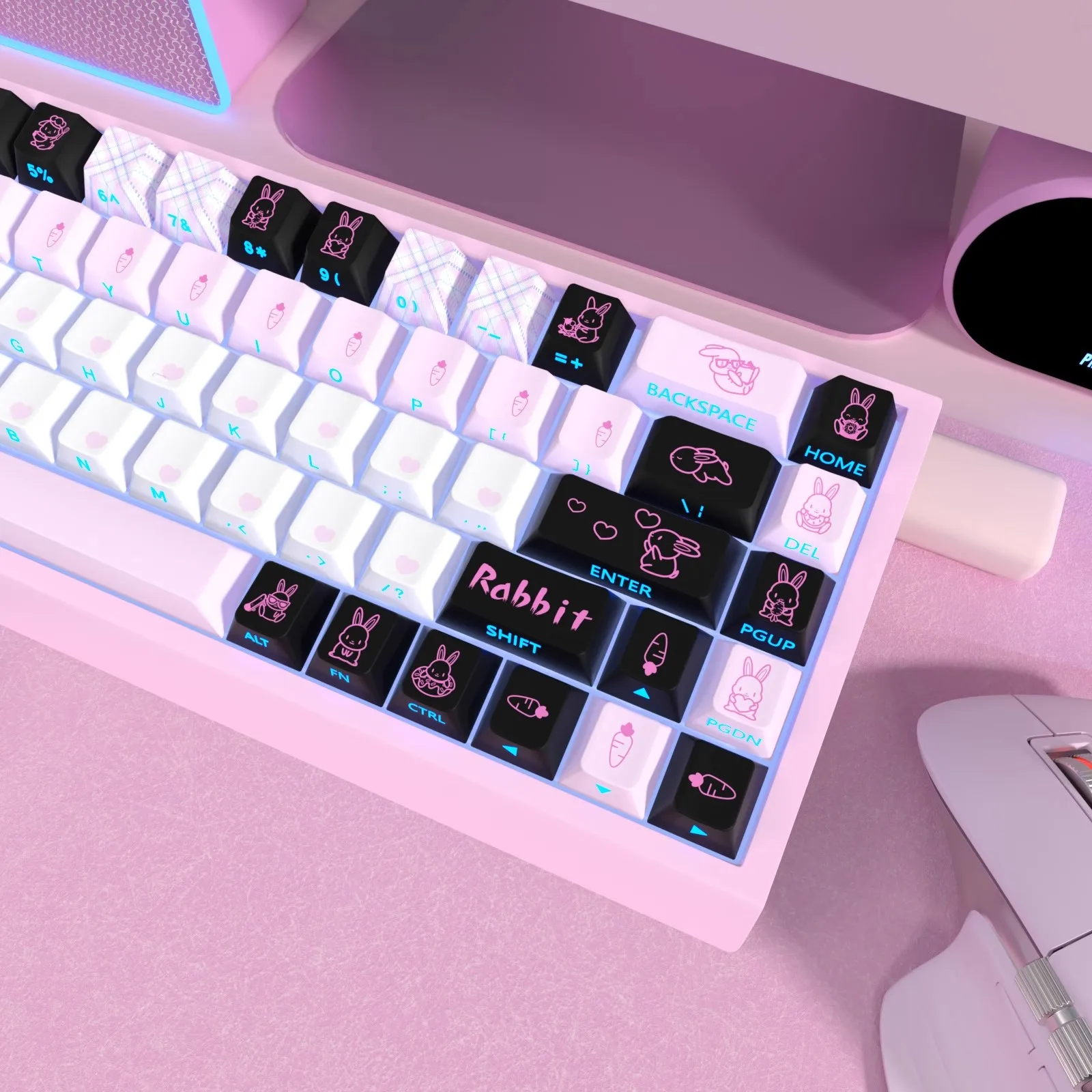 Comprar 1 Juego de teclas de Anime de conejo bonito, teclas retroiluminadas con estampado lateral de tinte PBT, teclas de perfil de cereza para ND63Ace60made68